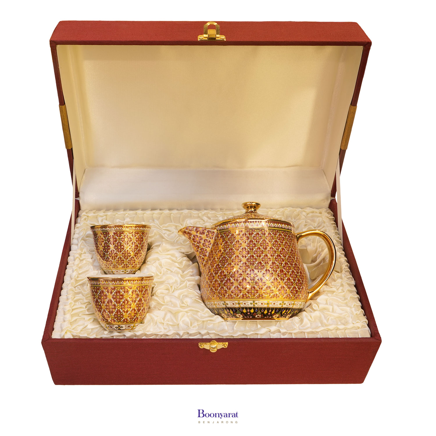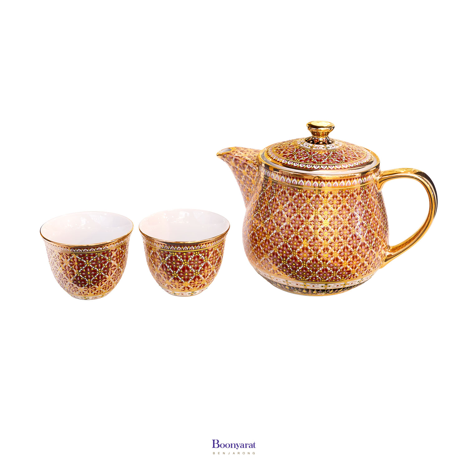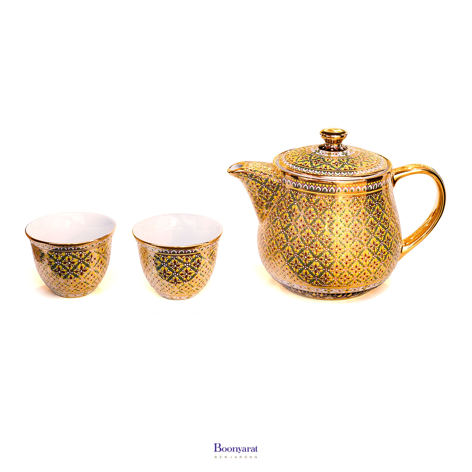 ชุดกาน้ำชาเศรษฐี พร้อมถ้วยชาคู่ ลายพิกุลก้านขด ลายเต็มทั้งชุด