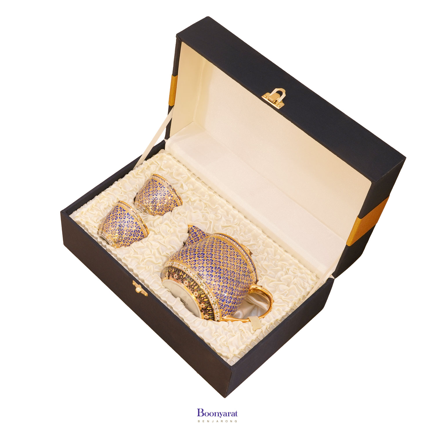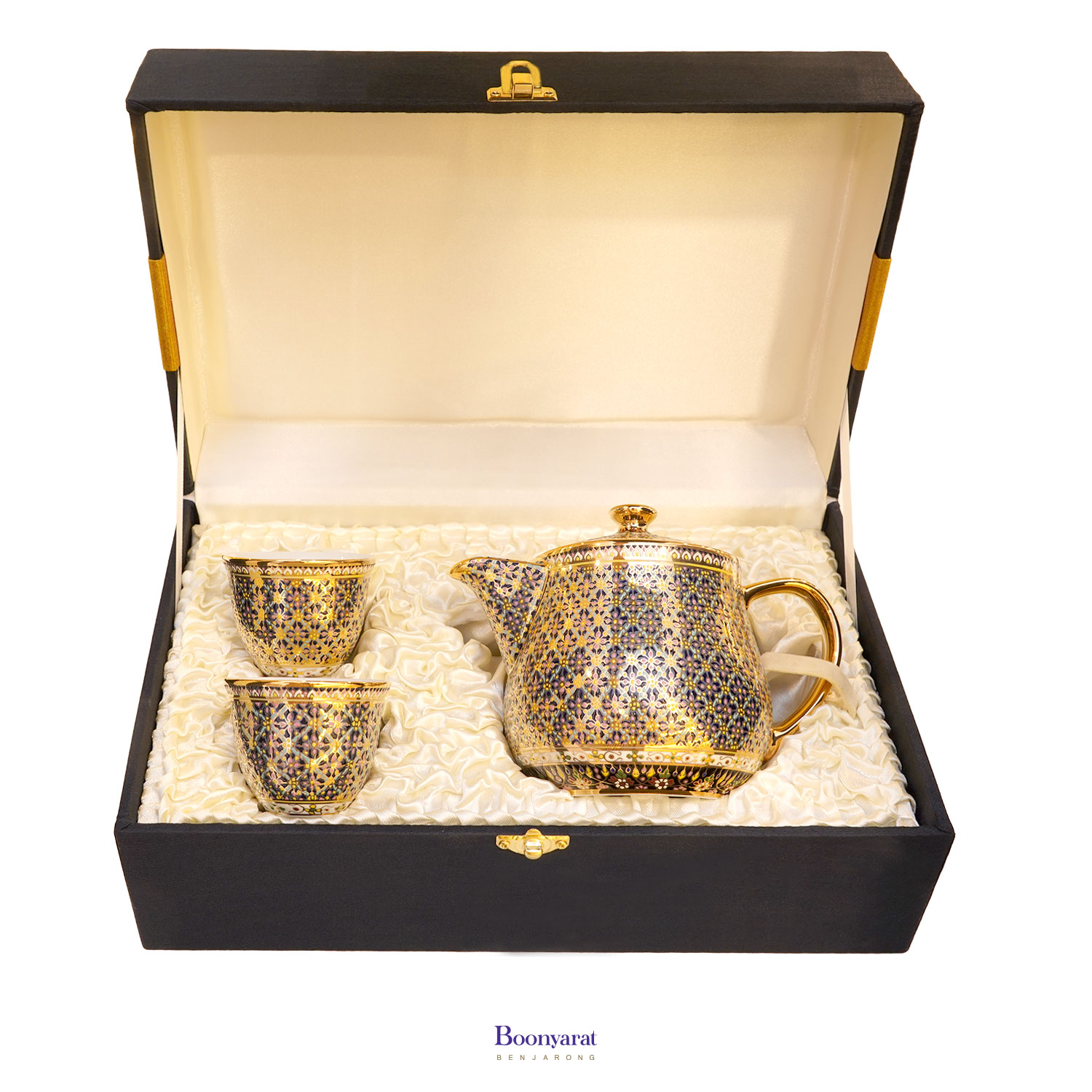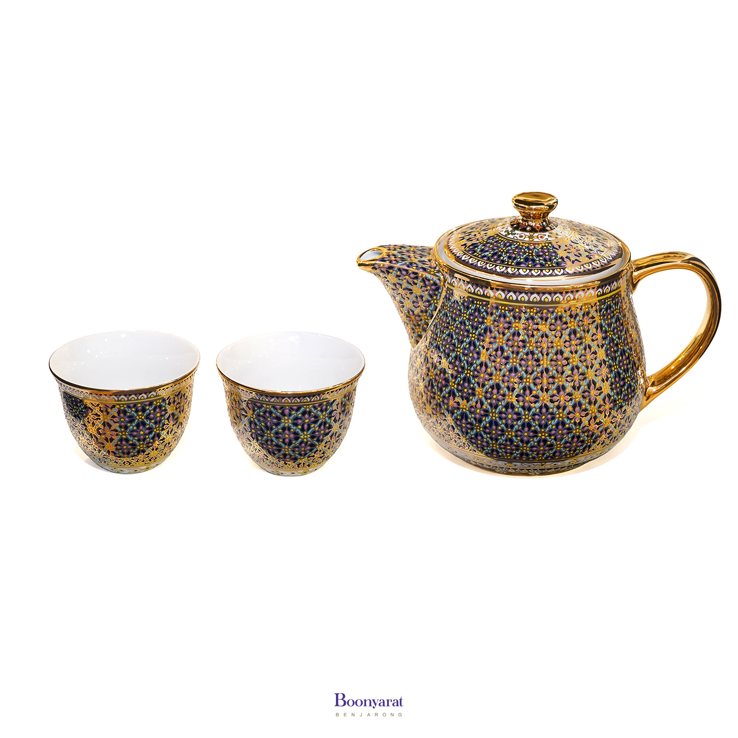 ชุดกาน้ำชาเศรษฐี พร้อมถ้วยชาคู่ ลายพิกุลก้านขด ลายเต็มทั้งชุด