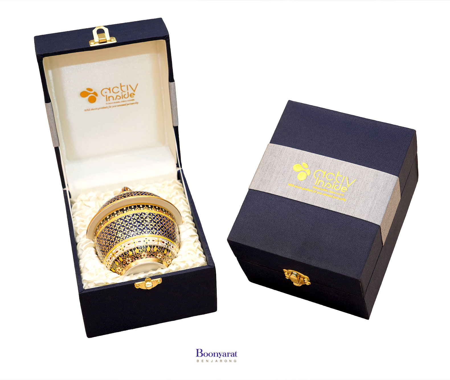 โถเบญจรงค์ 3 นิ้ว ลายพิกุลทอง งาน active inside