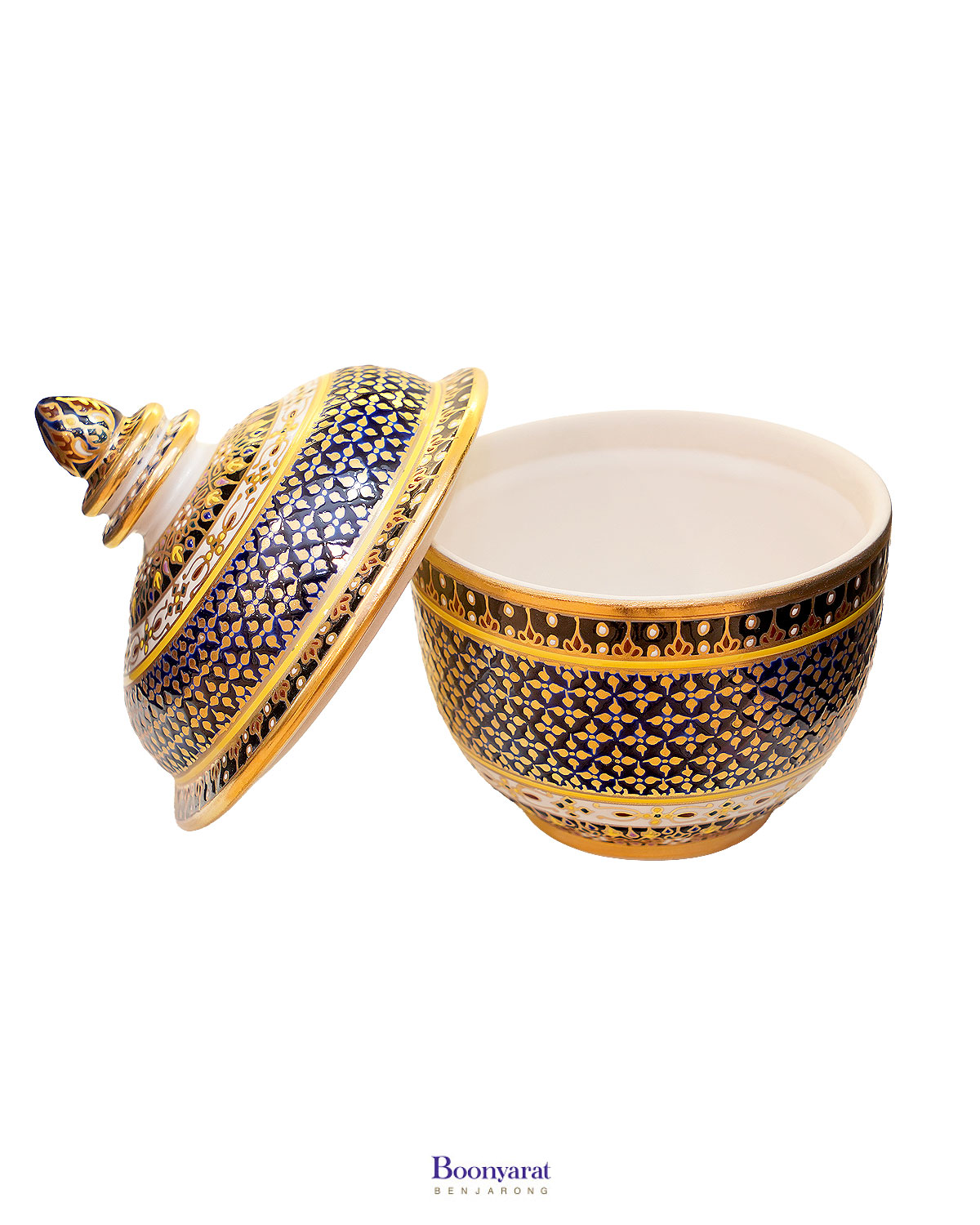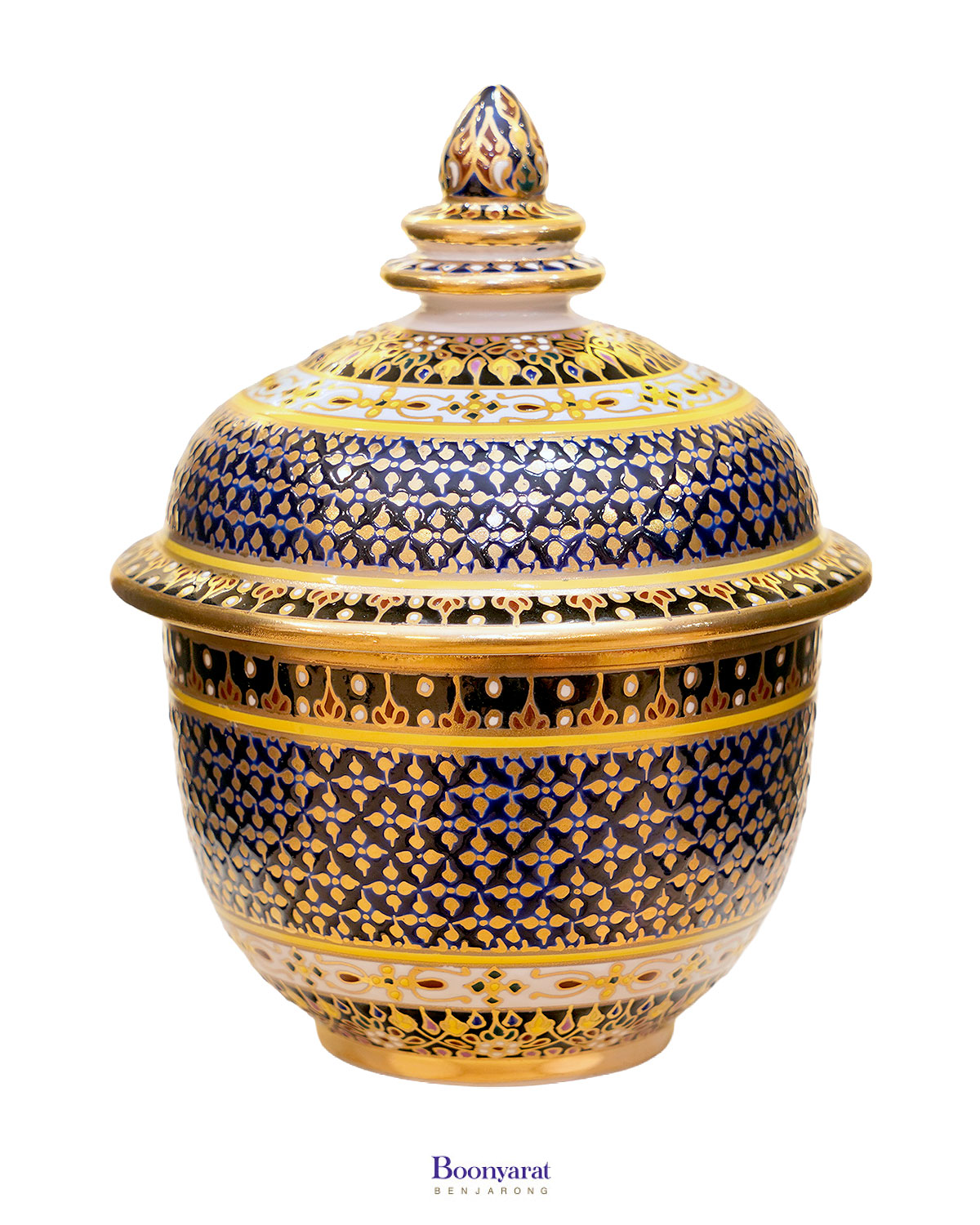 โถเบญจรงค์ ขนาด 3 นิ้ว ลายพิกุลทองสีกรมท่า ของที่ระลึกแบบไทย ๆ ที่ได้รับความนิยม