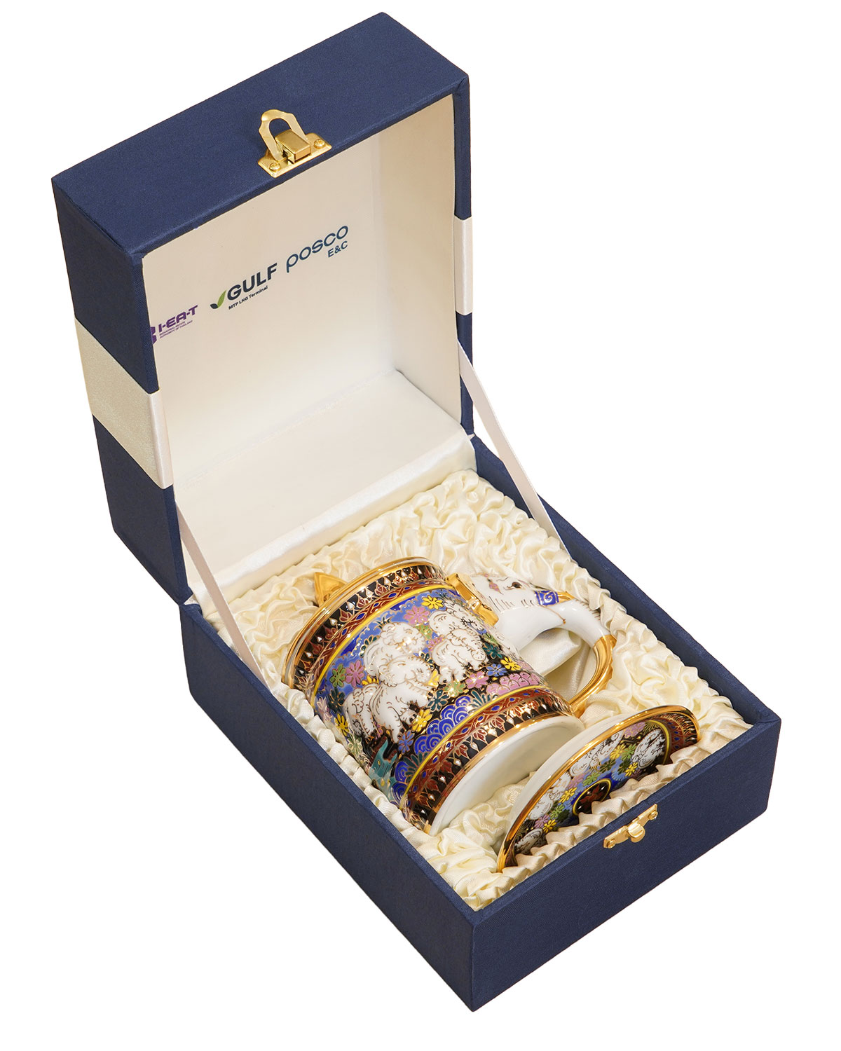 แก้วมัคทรงหูช้าง เขียนลายเบญจรงค์