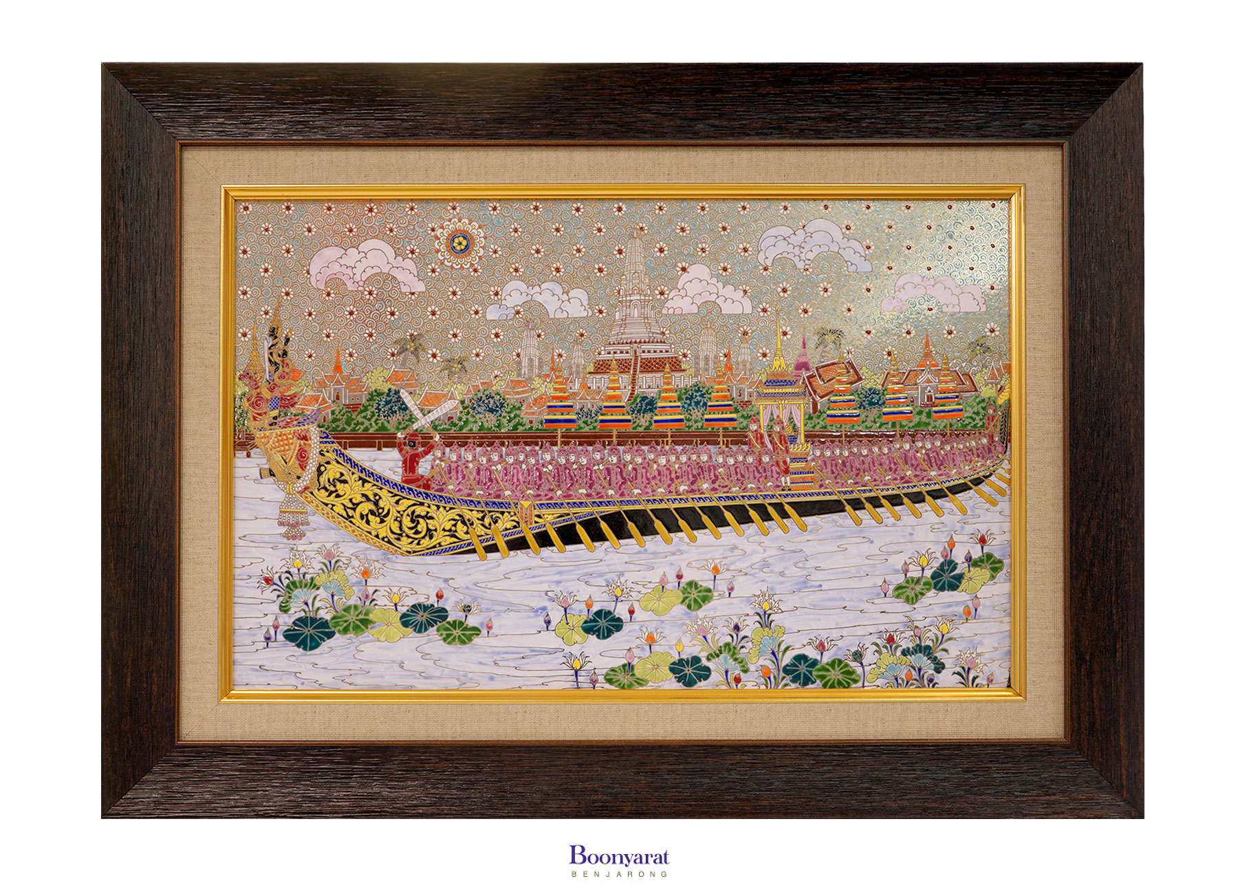 ภาพรวมกรุงเทพ Benjarong hand painted royal barge on tile